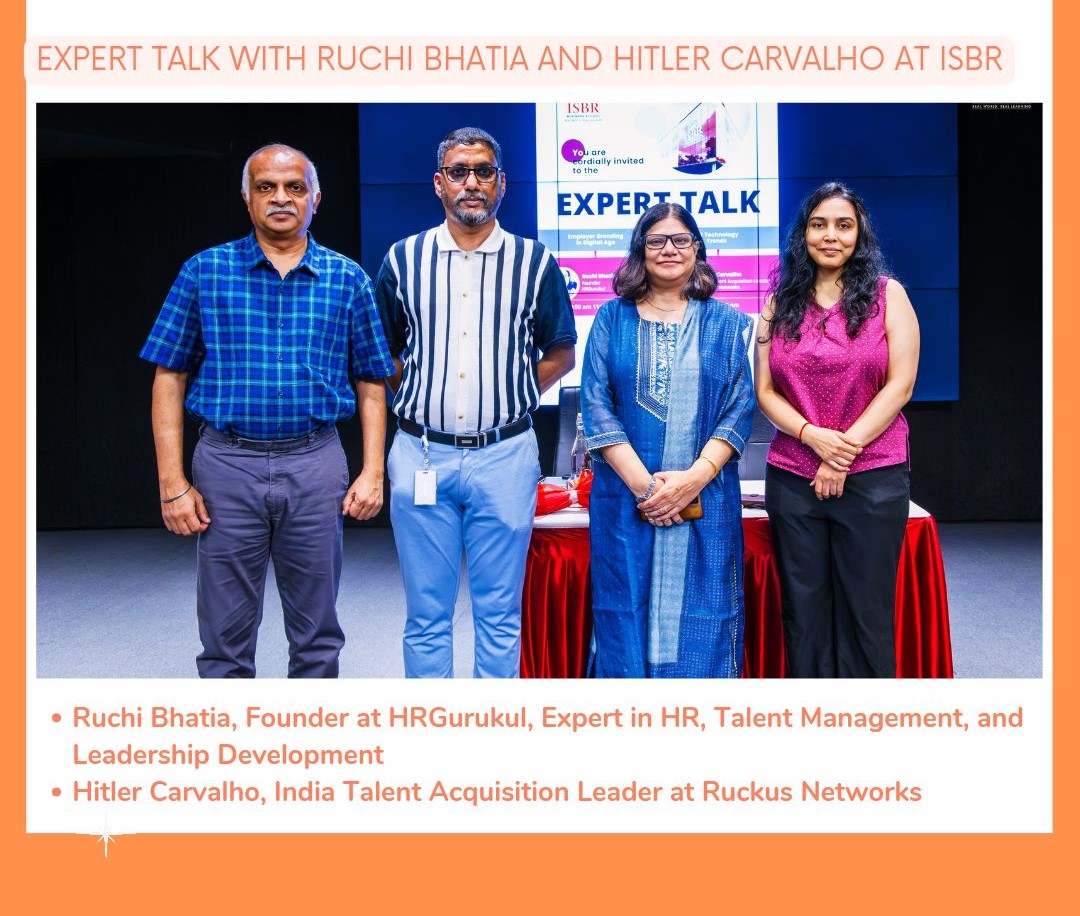 The students of ISBR Business School were privileged to attend an insightful and interactive expert talk featuring distinguished industry leaders Ruchi Bhatia and Hitler Carvalho. The event, titled Empowering Minds, provided valuable insights into the dynamic and rapidly evolving field of Human Resources and recruitment. The session was both engaging and educational, leaving a lasting impression on all attendees.