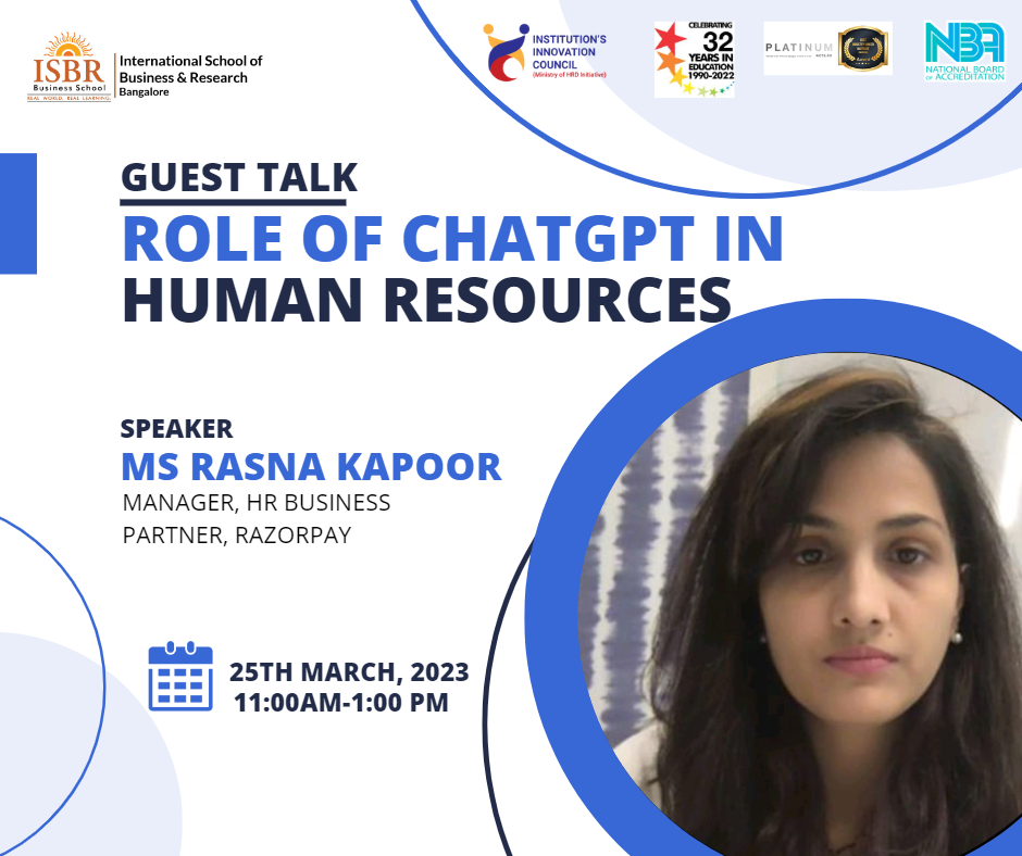 What is HR- functions- discussed about talent acquisition, HRBP. Discussed Chat GPT- usefulness, (It is the bubble which may or may not burst), also had deep discussion on ChatGPT vs Google, Startups & ChatGPT- how they can use ChatGPT to their benefit, Limitations of ChatGPT. She also spoke about how ChatGPT is of help to HR analytics job. Finally she followed up with the questions from the audience and helped them clarify their doubts. The event came to a conclusion with the delivery of the vote of thanks.