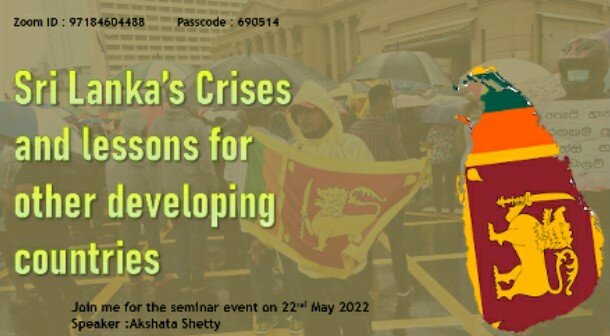 Sri Lanka’s crisis and lessons for other developing countries. Many Developing Country goes through an economic crisis. There can be various reasons for the crises. But it does not occur suddenly. It is a result of years of policy and decision making. There are many signs that can predict if a country’s economy is moving in the right direction or not. This seminar is based on one such country; Sri Lanka. The Sri Lankan economy has been facing one of its worst ever economic crisis, resulting from mismanaged government finances and ill-timed tax cuts, besides the impact of the covid pandemic. Huge piles of foreign debt, series of lockdowns, soaring inflation, shortage in fuel supply, fall in foreign currency reserves and devaluation of currency has adversely impacted the country’s economic growth. Due to low foreign exchange reserves, the country is unable to pay for essential commodities and is hence enduring shortages of food, medicine, fertilizer, and fuel, with power outages lasting for over 13 hours. Moreover, one of the sweeping agricultural reforms was to make Sri Lanka’s agriculture organic, hence the ban on the import