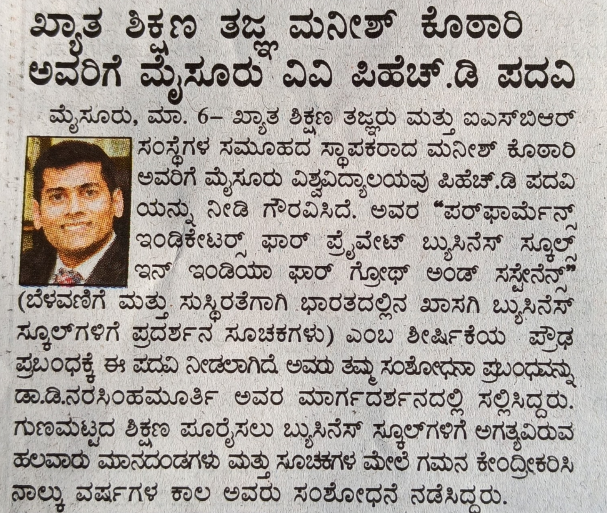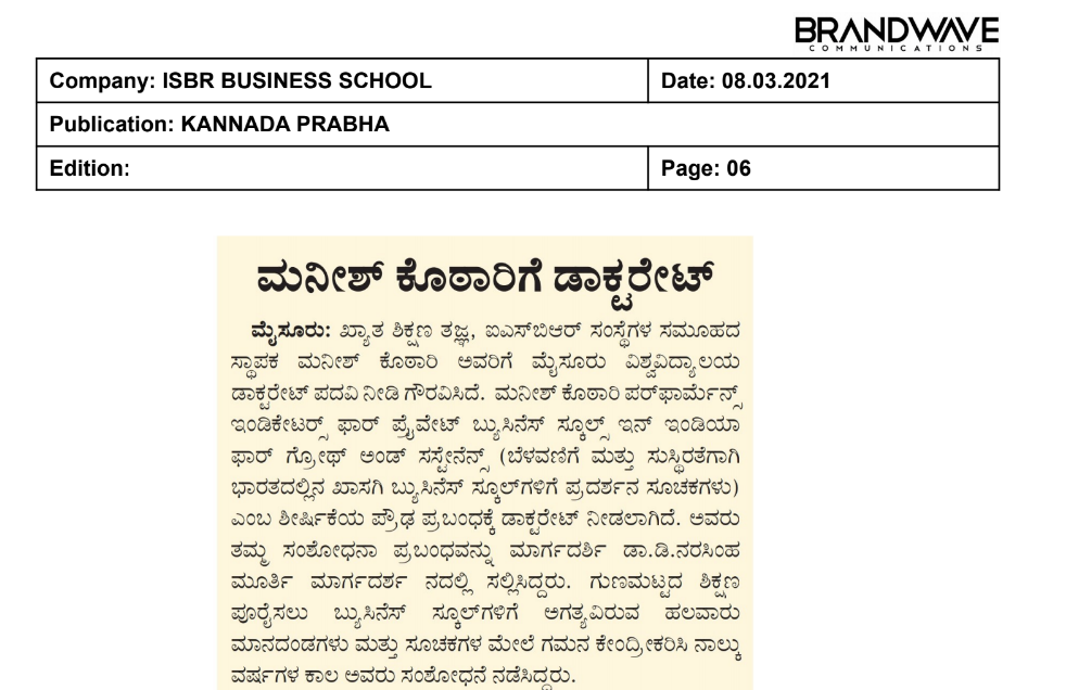 ISBR Business School, Bangalore based, Top Class B School for PGDM or MBA, Consistently ranked as best B School in India, AICTE-CII Platinum Catagory , with multiple specializations.