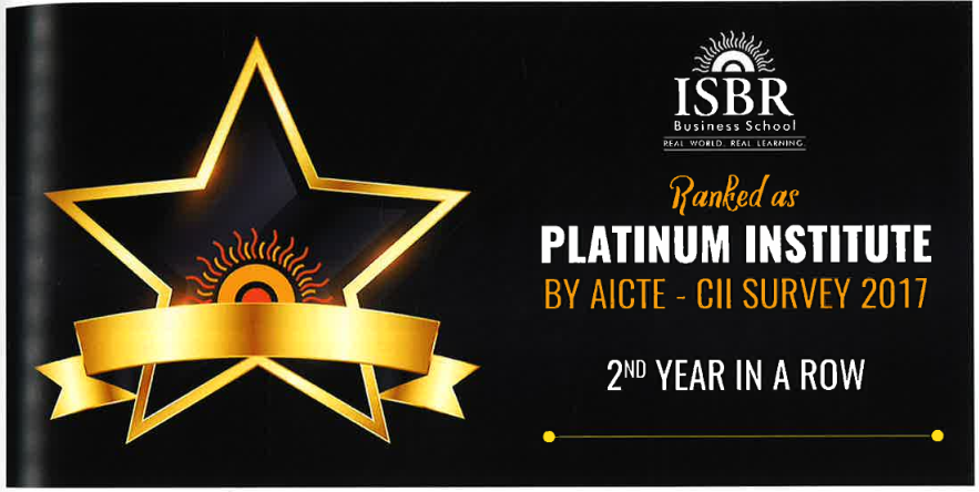 ISBR Business School has been ranked as “Platinum Institute“ under AICTE – CII Survey for 2 successive years. Only 18 percent of the total 900+ institutes of the country have been able to make it to the Top-level i.e. Platinum.