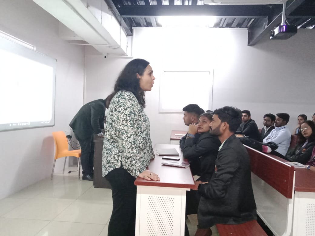 They were welcomed by the students in a classroom. Dr. Supriya Lamba Sahadev delivered a detailed presenatation to the students on semester exchange program. She explained the benefits of studying abroad, the different partner universities with which ISBR business school has the tie up, the total cost involved, how to minimize the living expenses while staying there. She also discussed about the scholarship benefits the students can avail in France, like Charpak. Then she briefed about the internship abroad programs offered to students. Then Mr. Shaik Hassain Basha took over the session and briefed the students about the virtual internships and non-virtual internships, which can be offered to the students.