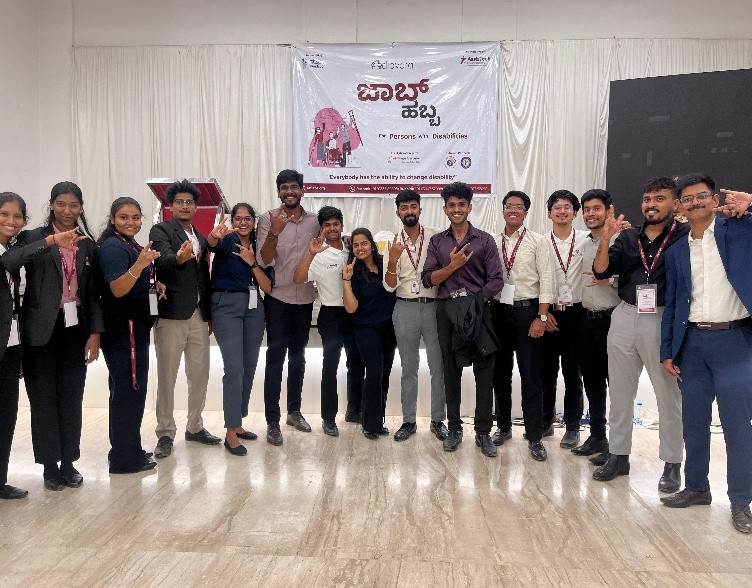 A team of 22 dedicated student volunteers from ISBR Business School actively participated in Job Habba—a transformative job fair focused on creating inclusive employment opportunities for physically challenged candidates. This impactful initiative was held at Kutchi Bhavan, Bangalore and brought together passionate students, inclusive employers, and inspiring job seekers to foster a more equitable job market.
