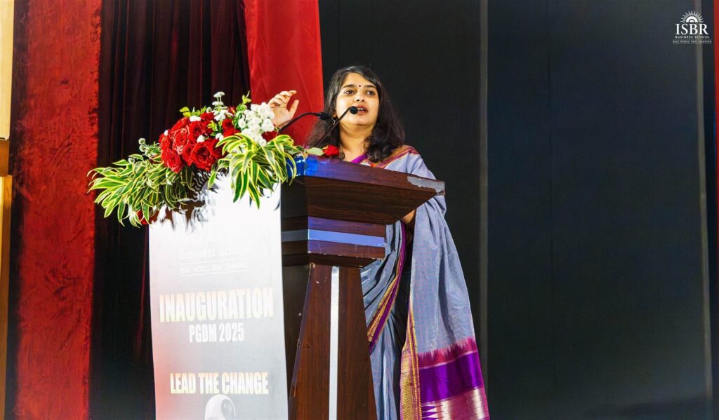 A proud alumna from the 2012 PGDM batch, Ms. Vrusha Raghu shared her heartwarming journey from ISBR to becoming an industry leader. Currently serving as Associate Director – Learning and Development at NineLeaps, she highlighted ISBR’s student-centric culture. Her experience as a beneficiary of the international scholarship program for an exchange opportunity in France was a testament to the institute’s dedication to nurturing talent. The presence of alumni like Ms. Vrusha Raghu reinforced how the PGDM Inauguration ISBR fosters continuity between past cohorts and incoming scholars.