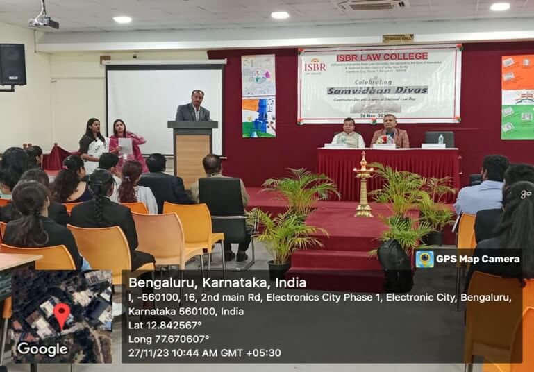 On November 27, 2023, ISBR Law College, Electronics City, Bengaluru, proudly celebrated Samvidhan Diwas (Constitution Day), reaffirming its commitment to constitutional values and civic responsibility.