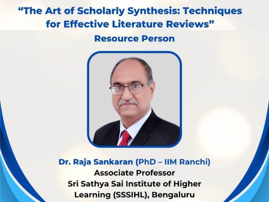 The virtual event was graced by Dr. Raja Sankaran (PhD – IIM Ranchi), Associate Professor at Sri Sathya Sai Institute of Higher Learning (SSSIHL), Bengaluru. A well-known scholar in research methodology and doctoral mentoring, Dr. Sankaran’s session was a blend of intellectual depth and practical strategies, making it highly relevant for scholars across various research stages- directly benefiting the FPM community at ISBR.